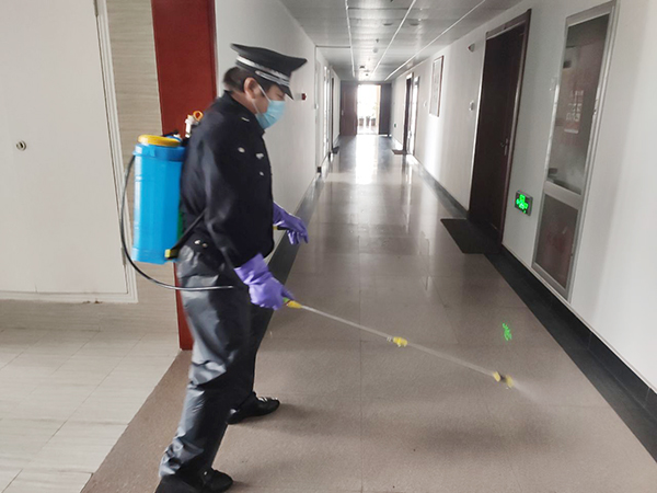 公司為在崗員工發(fā)放了口罩、噴壺、消毒酒精等防護用品,每日對各工作場所、班車、車庫、電梯、宿舍等進行定點消毒。