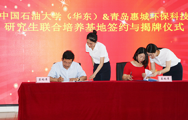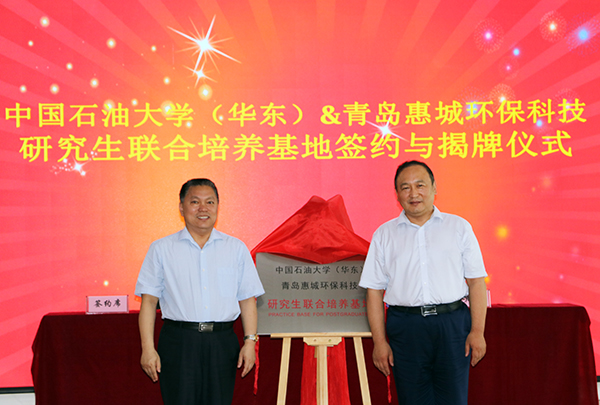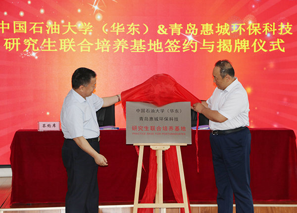 7月15日下午,“中國石油大學(華東)與青島惠城環(huán)保科技研究生聯(lián)合培養(yǎng)基地”揭牌儀式在公司研發(fā)中心隆重舉行,中國石油大學(華東)副校長、研究生院院長李兆敏,研究生院常務(wù)副院長閻子峰及學校其他領(lǐng)導、老師,我公司董事長張新功、常務(wù)副總經(jīng)理葉紅攜公司核心技術(shù)人員及入學石大的學生代表共同出席了此次揭牌儀式。