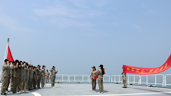活動(dòng)中,大家一起參觀了軍艦,并在軍艦上舉行了2018年度優(yōu)秀共產(chǎn)黨員表彰和黨員示范崗授牌表彰儀式。隨后,公司全體黨員重溫入黨誓詞,站在甲板上,大家舉起右手、握緊拳頭莊嚴(yán)宣誓,感悟今日黨員之責(zé)任,更加堅(jiān)定黨員的理想信念。