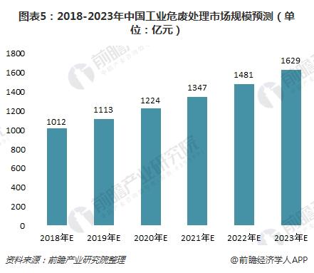 隨著工業(yè)危險廢物的增加,國家會增加危廢市場投資,同時,該行業(yè)的企業(yè)規(guī)模會逐漸變大,兼并收購增加。預(yù)計到2023年,工業(yè)危廢處理市場規(guī)模將達到1629億元左右,2018年至2023年復(fù)合增長率為10%。