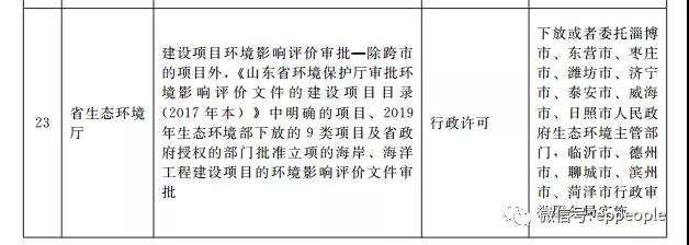 北極星大氣網訊:近日,山東省人民政府頒布《山東省人民政府關于調整實施部分省級行政權力事項的決定》,將環評審批、危廢許可等多項審批權下放,詳情如下: